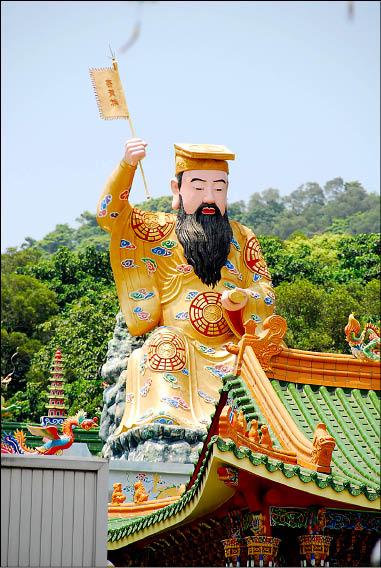 宏德宮廟後22台尺高的巨型孫臏像非常宏偉。<br>(記者黃立翔攝)
