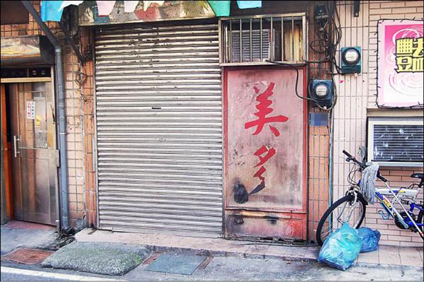 基隆市龍安街的美多小吃店涉嫌強拉客人進入店裡,昨天大門深鎖並沒有營業。(記者楊培華攝)