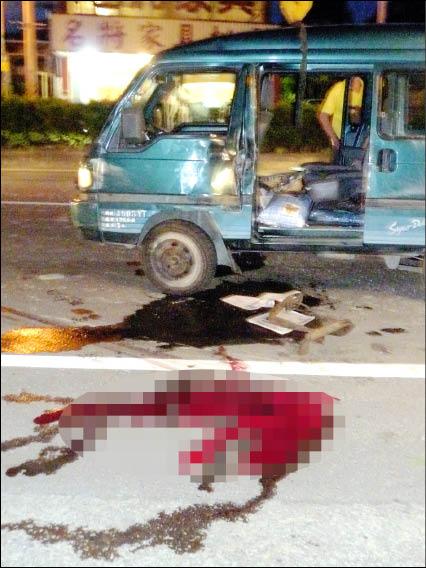 新竹縣芎林鄉富林路三段和文德路路口昨晚發生死亡車禍,往生的駕駛人就是被自己所駕駛的廂型車壓死。(記者黃美珠攝)