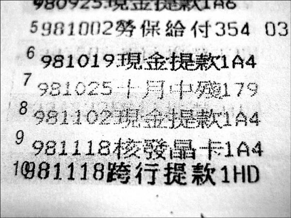 中度精神障礙且領有殘障手冊的曾姓男子報警說,家人昨天幫他整理物品時,赫然發現郵局存摺內金額大幅短少,去年10月領的勞保給付200萬元,僅剩131萬元,新竹市警局第一分局西門派出所查出,他被跨行提款盜領的第一筆,是去年11月18日於竹市中山路的統一超商,金額2萬元。