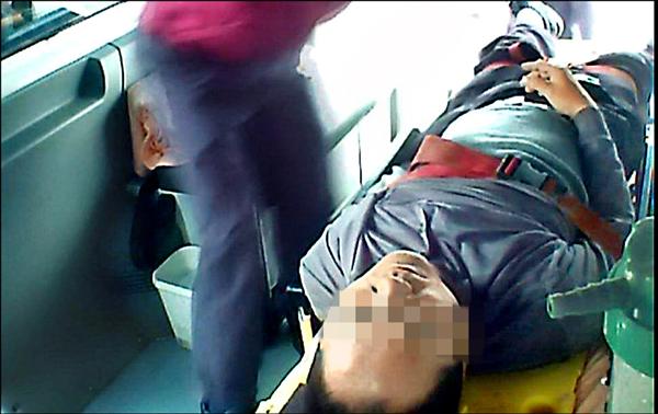 校車司機身體不適,被緊急送往醫院救治。(記者林孟婷翻攝)