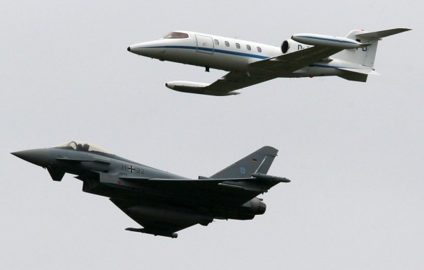 德國23日發生飛機空中對撞事故,一架民用的里爾(Learjet)商務噴射機與一架颱風式戰鬥機發生碰撞,導致民用機墜毀,機上2人1死1失蹤,戰鬥機則平安返回空軍基地降落。
