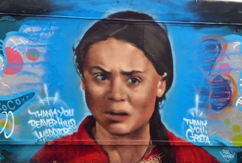 瑞典16歲環保小將格蕾塔.桑伯格壁畫遭到加拿大居民破壞。(圖擷自Hermann Balk推特)