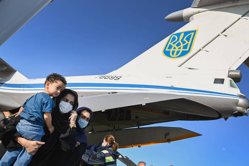 22日有1架載有83人,包括31名烏克蘭公民的軍用運輸機從阿富汗降落基輔。(歐新社)