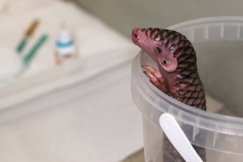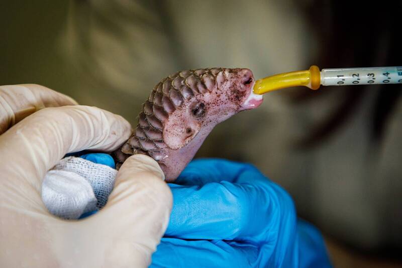 由於媽媽缺奶,目前穿山甲寶寶在人工餵奶。(圖擷自推特)