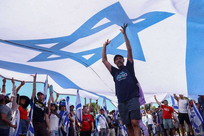 以色列議會24日通過由總理納坦雅胡(Benjamin Netanyahu)政府發起的司法改革法案,該計劃飽受爭議,剝奪了最高法院駁回政府「不合理」決策的權力。為此民眾舉行大規模示威,工會則積極醞釀罷工。