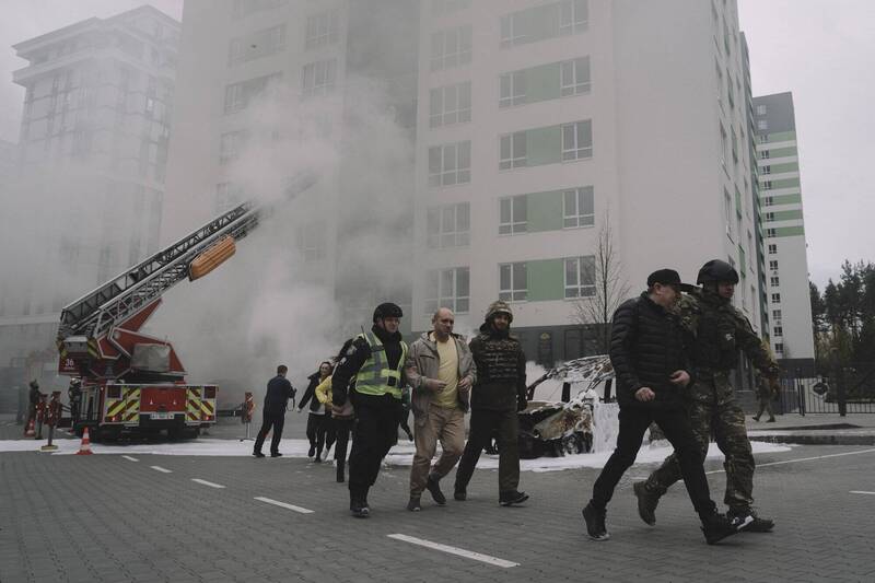 烏克蘭內政部長克力門科指出,俄軍在過去24小時空襲了118個烏克蘭城鎮與村莊,襲擊地點之多是今年新高。圖為遭受空襲的克列緬丘格市。((彭博)