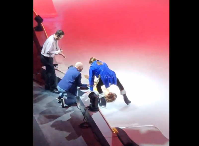 美國明尼蘇達州的冰上迪士尼表演,驚傳《美女與野獸》女主角「貝兒」的扮演者重摔一度命危。(圖擷自@CrazyFnVideos「X」帳號)