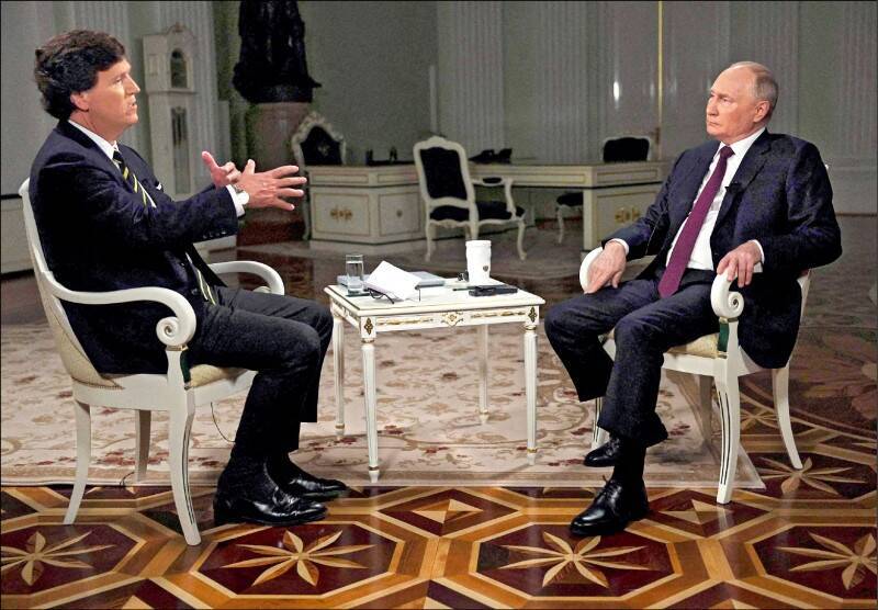 卡爾森以激進保守觀點而聞名,一直窮追猛打美國軍援烏克蘭議題,擁有大量右翼追隨者,在去年4月被逐出他在福斯新聞黃金時段所主持的節目。卡爾森上週在俄羅斯對普廷進行了獨家採訪,普廷利用這次專訪宣傳他正在對烏克蘭發動的戰爭,並抨擊美國政府。