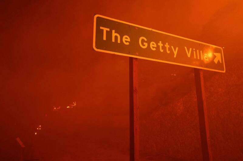 美國洛杉磯博物館蓋蒂別墅收藏了不少古文物,遭野火逼近險象環生。(法新社)