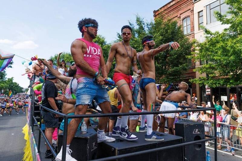 2024年6月8日,美國華盛頓特區同志遊行(D.C. Pride Parade)中,參與者在花車上熱舞。華盛頓將於2025年主辦世界同志遊行(WorldPride),這也是全球最大的同志慶典之一。(法新社)