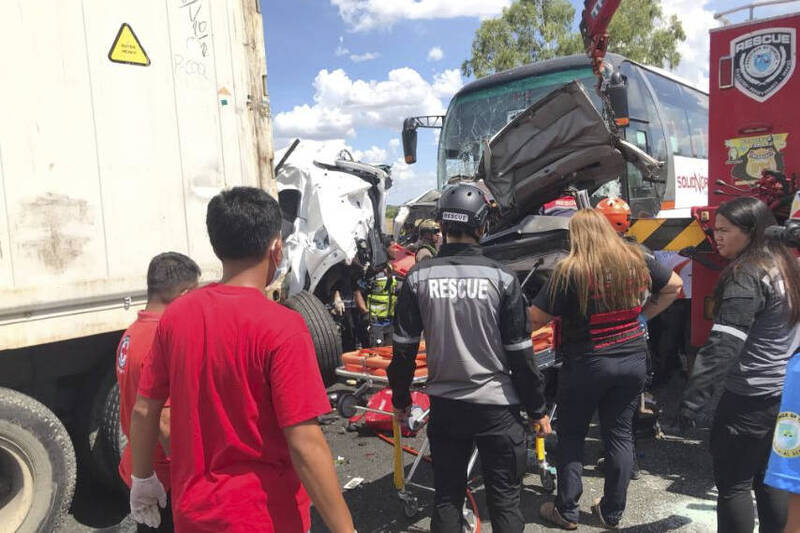 菲律賓打拉市發生連環車禍,造成至少10人死亡37人受傷。(美聯社)