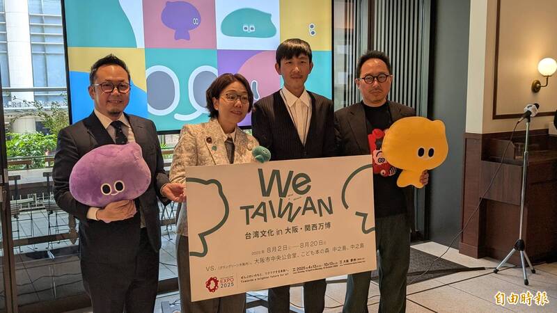 文化部次長王時思(左2)率文總秘書長李厚慶(左)、We TAIWAN 創意總監林昆穎(右2)和駐日台灣文化中心主任曾鈐龍(右),今天在東京舉辦記者會,宣傳預定8月2日將於大阪開幕的「We TAIWAN 台灣文化in大阪.關西世博」活動。(記者林翠儀攝)