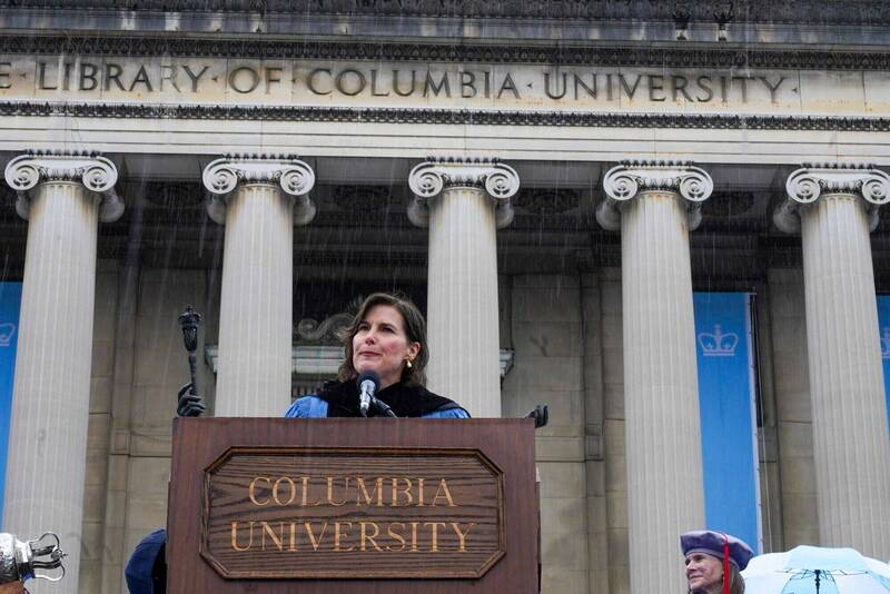 美國哥倫比亞大學代理校長希普曼21日在紐約市曼哈頓的主校區舉行的全校畢業典禮上致詞。(路透)
