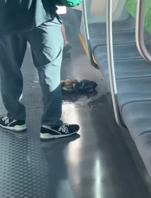 燒得焦黑的物品掉落在車廂地板上。(圖擷自@Trainfo「X」帳號)