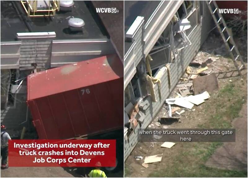 綜合外媒報導,肇事卡車於德文斯(Devens)當地時間21日上午10時47分傑克森路疑似先撞破圍欄,並沿途擦撞建築物外牆、撞毀多扇窗戶後,一路衝進「施萊弗職業訓練中心」園區內一棟大樓中庭大廳。