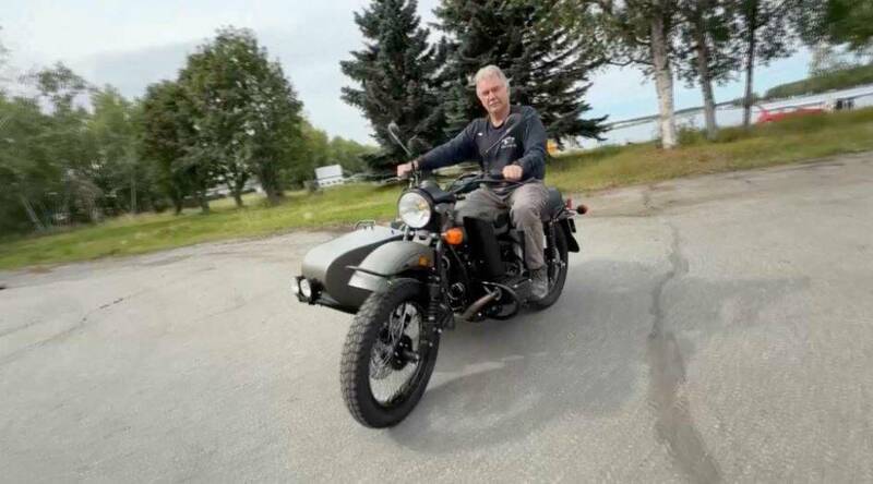 美國阿拉斯加居民Mark Warren騎著俄羅斯總統普廷轉交贈送的全新烏拉爾(Ural)摩托車。(路透)