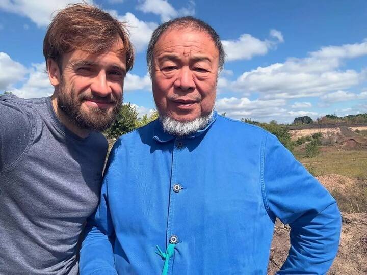 艾未未換上藍色外套,與俄羅斯行動主義者維爾季洛夫一同出現在烏克蘭戰地附近。(圖:Instagram@petyaverzilov)