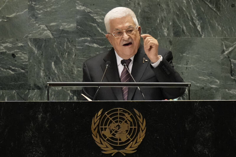 巴勒斯坦自治政府主席阿巴斯在去年紐約聯合國大會上發表演說,但今年赴美簽證已遭美撤銷。(美聯社檔案照)