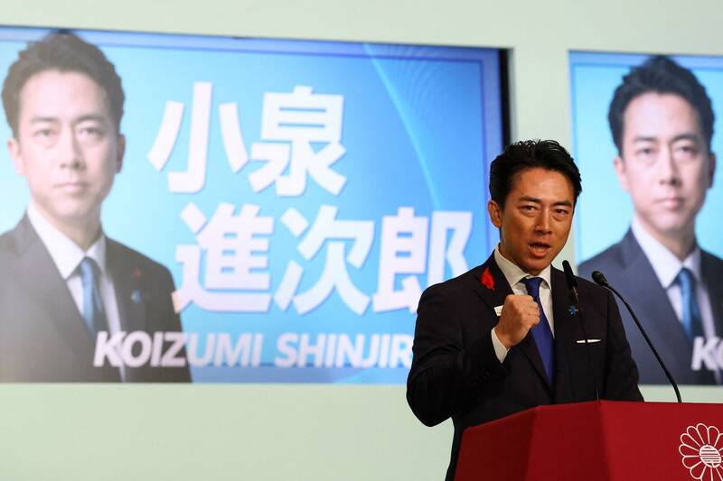 自民黨總裁選舉首輪,小泉進次郎緊追其後。(路透)