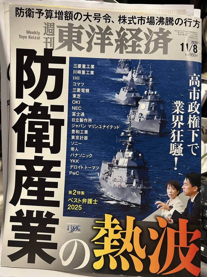 謝金河分析,日本人一向內斂,含蓄,這次顯然是被激怒了!這次高市從登上自民黨總裁就職典禮致辭時即表示將強化日本軍備,重視供應鏈安全,重返半導體產業,他從日本帶回來的日本財經雜誌的「東洋經濟週刊」,整本都在介紹日本的防衛產業,日本的軍工股及半導體供應鏈股價全面大漲,看起來日本是有備而來。