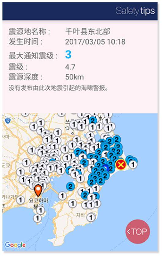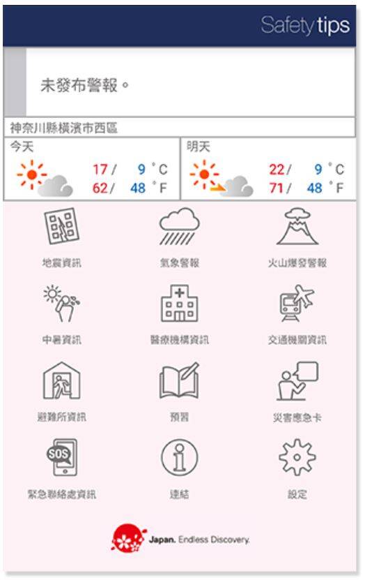 支援繁體中文的「Safety tips」能接收地震、海嘯與其他日本國內氣象等資訊。(擷取自官網)