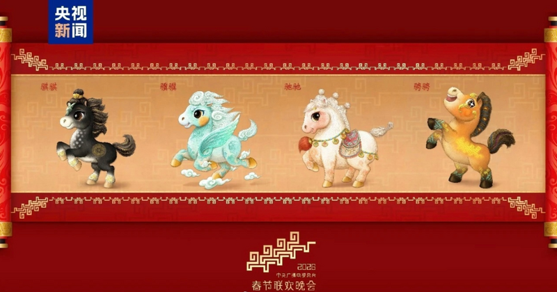 中國官媒《央視》2026春晚4馬吉祥物,在網路上瘋傳是和代表末日災厄的「天啟4騎士」對應。(圖擷自微博)