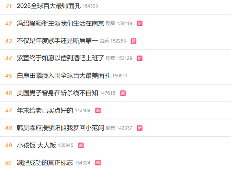 微博前50大熱搜多是演藝圈、社會、生活新聞。(圖擷自微博)