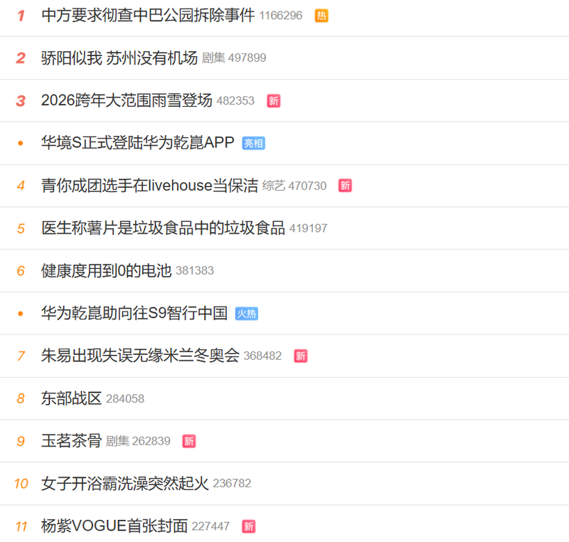 從中國微博可以看到,目前熱搜第1由「中國要求徹查中巴公園拆除事件」佔據,亦即要求巴拿馬說明為何拆毀「中巴友誼」紀念牌坊,至於和對台軍演有關的熱搜僅有1則排在第8,而且詞條只寫著「東部戰區」,若不點進去根本不知道有演習。