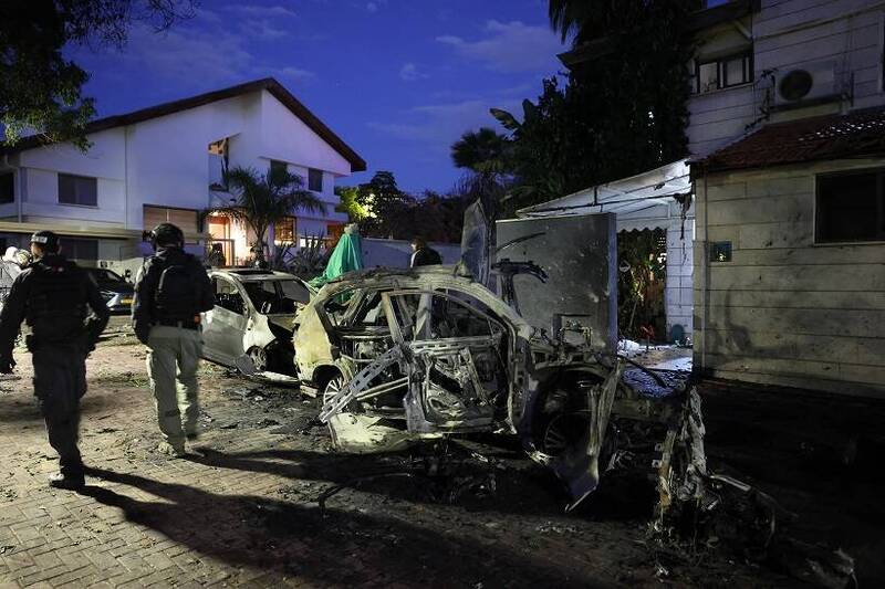 伊朗反擊以色列,特拉維夫旁邊的城市Rosh Haayin汽車遭飛彈炸毀。(歐新社)