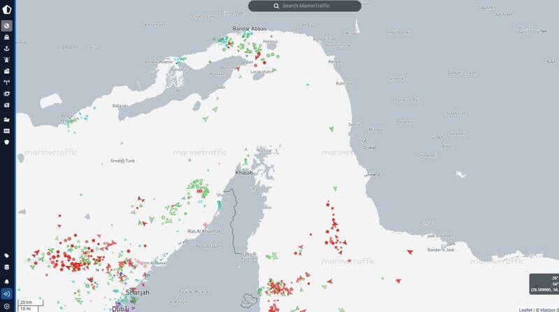 船舶追蹤網站MarineTraffic說,已有兩艘船通過荷姆茲海峽。(擷取自MarineTraffic網站)