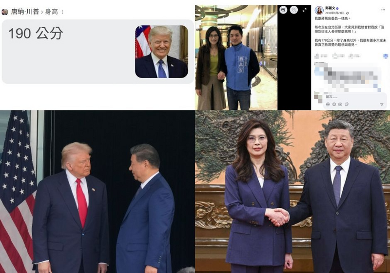 中國國家主席習近平的身高一直是個「不能說的祕密」,大家只能從習近平與別人合照推斷他究竟有多高。去年10月30日「川習會」,習近平站在身高190公分的美國總統川普身旁時竟差不多高,如今「習鄭會」,習近平站在身高178公分的國民黨主席鄭麗文身邊「也還是差不多高」,網友笑稱,「習近平身高伸縮自如」。