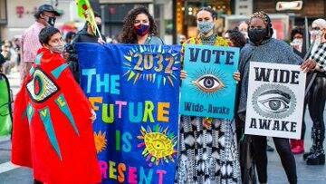 現代版「覺醒者」是由一群藝術家於2020年創立,主張透過穿著華麗服飾與非暴力抗爭來宣揚其政治理念。(圖擷取自X)