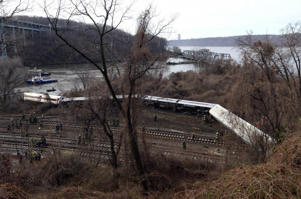 美國紐約鐵路哈德森線(Hudson Line)一輛大都會北方鐵路(Metro-North Railroad)列車行經布朗克斯地區(Bronx)時意外脫軌,目前已知至少有4人死亡,63人受傷,其中11人有生命危險,據現場救難人員表示,至少還有10名乘客受困在車廂殘骸中。