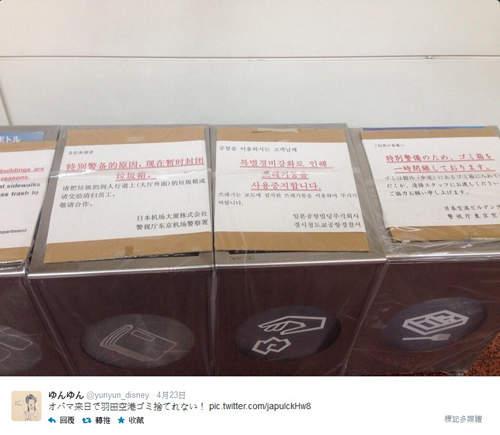 另外令民眾感到不便的就是東京各車站的各種封鎖,範圍包括置物箱、垃圾桶,甚至是自動販賣機,一律暫停使用,以避免有心人士放置爆裂物,不過民眾及網友則認為原本日常生活中的便利被剝奪,讓部分東京居民對這次的歐巴馬訪日之行頗有微詞。