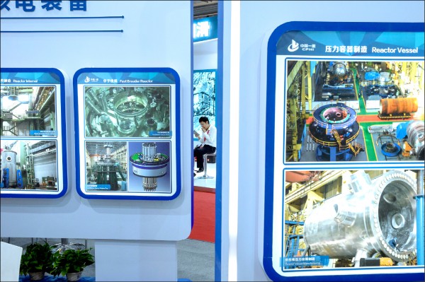 一名男子上月參加在北京舉行的中國國際核電工業展。(歐新社)