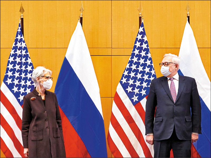 美國副國務卿雪蔓和俄國副外交部長雷雅布可夫,十日在瑞士日內瓦聚首,就俄國與烏克蘭緊張情勢展開談判。(路透)