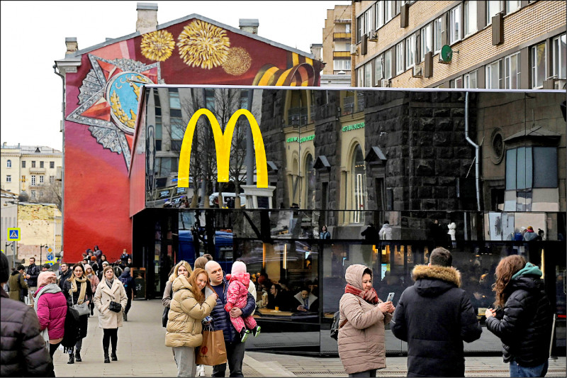 三月暫停八四七家俄國分店營業的麥當勞十六日採取進一步行動,發表聲明說,「在營運逾三十年後,麥當勞宣布退出俄國市場,並已啟動出售俄國業務的程序;烏克蘭戰爭引發的人道危機,以及不可預測的營運環境,致使麥當勞認定,持續持有俄國業務不再可行,也違背麥當勞的價值」。