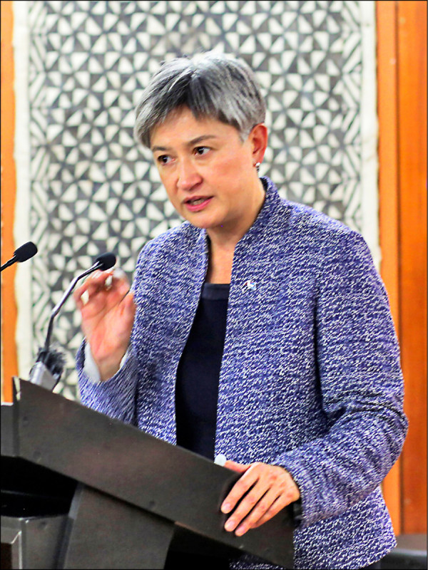 澳洲外交部長黃英賢5月26日訪問斐濟,在首都蘇瓦發表談話。(美聯社檔案照)