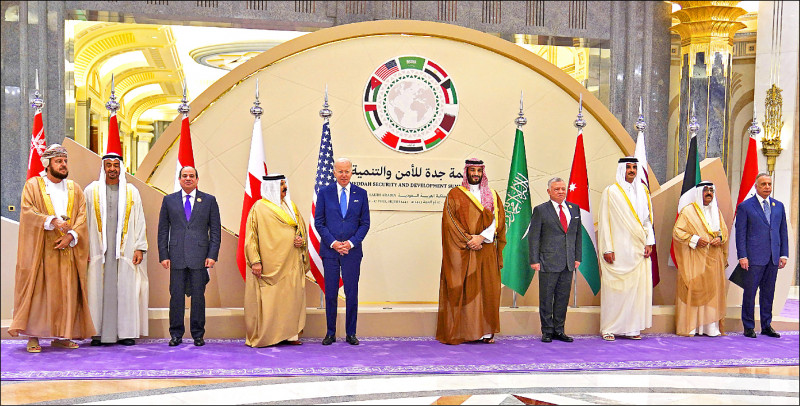 美國總統拜登訪問沙烏地阿拉伯,十六日與阿拉伯國家領袖舉行峰會,拜登在峰會上表示,美國會持續充分與中東往來,「不會留下真空給中國、俄羅斯或伊朗填補」。油價動盪和糧食安全也是峰會焦點,拜登預期沙國將進一步增產石油。沙國實質統治者、王儲穆罕默德.沙爾曼在峰會上說,希望建立「共同合作的新年代」,加強美沙兩國的戰略夥伴關係。