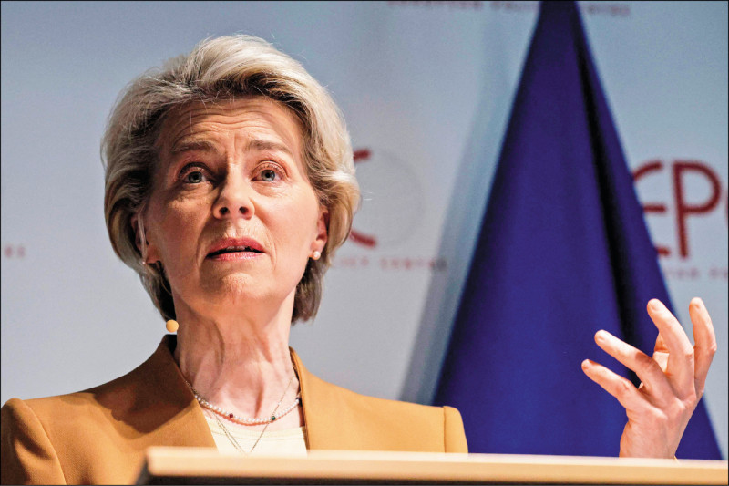 歐盟執委會主席馮德萊恩卅日在布魯塞爾發表演說,指中國對外更獨斷,對內更壓迫。(法新社)