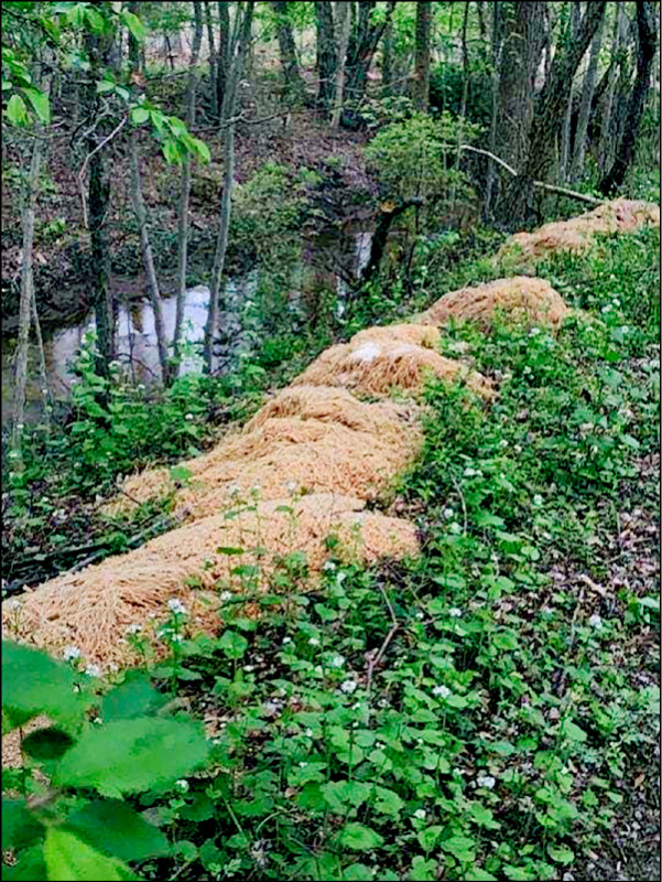 紐澤西州中部老橋鎮的1條溪流被人傾倒500磅重的義大利麵條。(美聯社)