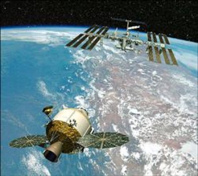 太空船準備與國際太空站銜接的畫面。