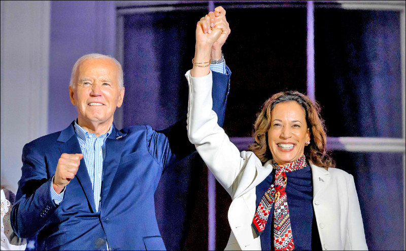 迪士尼家族女繼承人兼民主黨大金主阿比蓋兒.迪士尼放話不再捐款,除非總統拜登退選。圖為拜登四日與副總統賀錦麗在白宮陽台上欣賞美國獨立紀念日煙火時舉手致意。(法新社)
