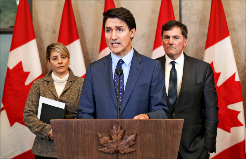 加拿大總理杜魯道(中)十四日召開記者會,強調加國政府握有證據,顯示印度政府涉及錫克教分離主義領袖尼賈爾命案。(法新社)