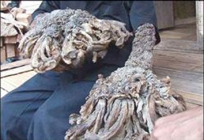 迪迪的雙手長滿類似樹根的疣瘤。他因病丟了飯碗與老婆,還飽受嘲弄。(取自英國每日電訊報網站)