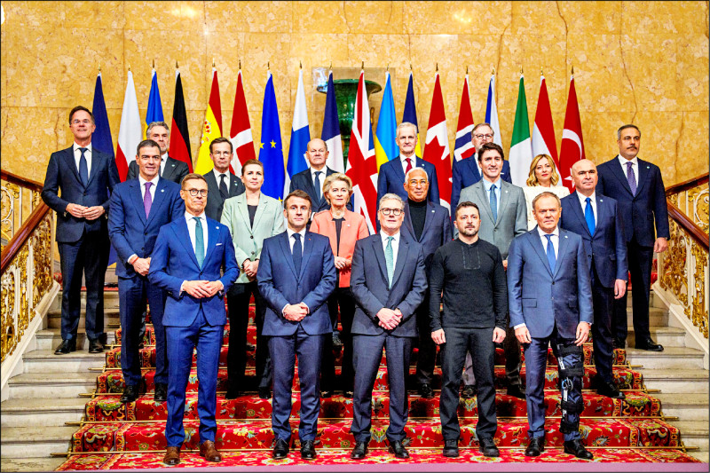 英國首相施凱爾二日在倫敦召集法、德、義、加拿大與土耳其等近廿國盟國領袖,打造「自願者聯盟」(Coalition of the Willing),計畫投入包括地面部隊等軍事資源。據英國廣播公司(BBC)報導,與會領袖達成四項共識:一持續軍援烏克蘭,並擴大對俄國經濟制裁,削弱其侵略能力;二是確保和平協議優先保障烏克蘭主權與安全,並由烏方平等參與談判;三是協助烏克蘭強化防禦工事,建立長效嚇阻屏障;四是組成「自願者聯盟」,捍衛和平協議,確保區域穩定。