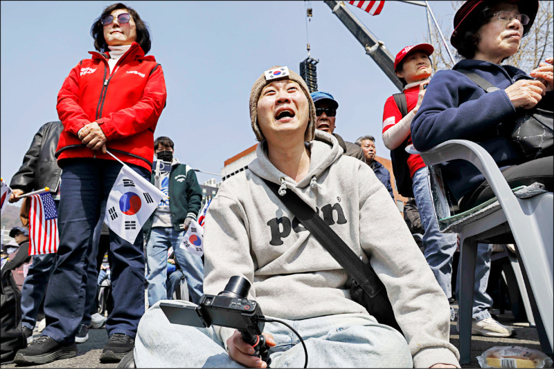 尹錫悅支持者滿臉愁容坐地哀嚎。(歐新社)