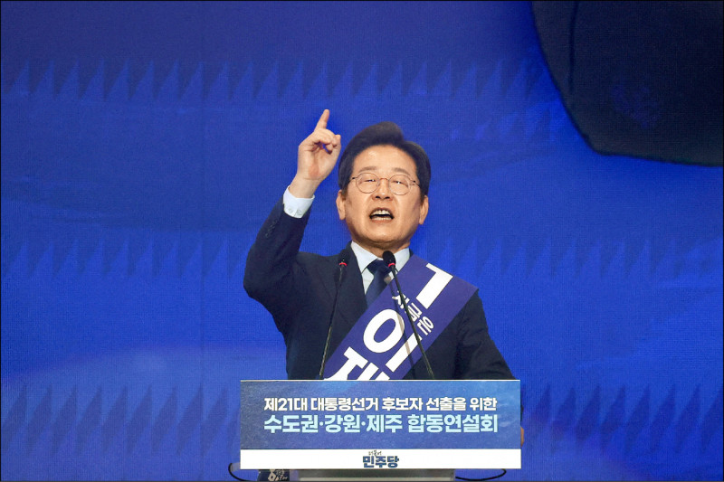 南韓最大在野黨共同民主黨總統候選人李在明涉嫌違反公職選舉法,最高法院1日就二審無罪判決發回重審,為李在明參選總統之路投下變數。(路透檔案照)