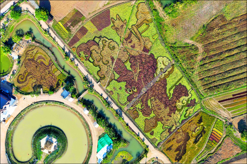 泰國北部清萊的稻田成為藝術品,象徵當地人安度洪災。(法新社檔案照)